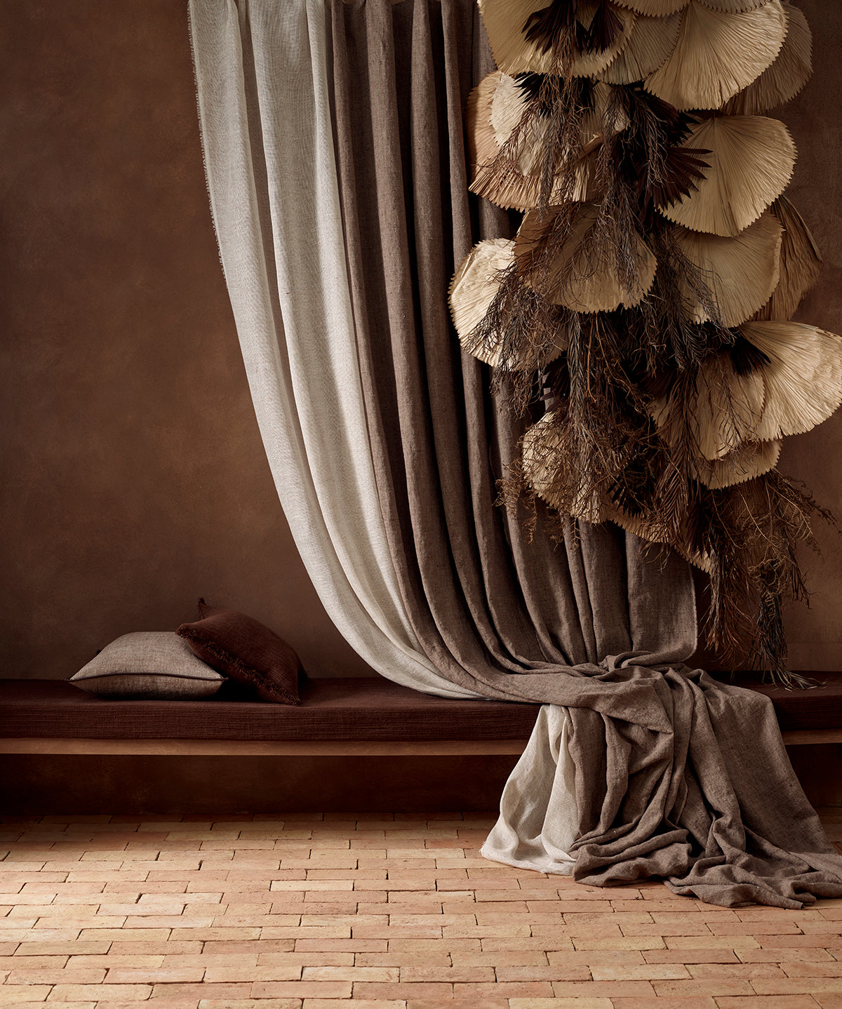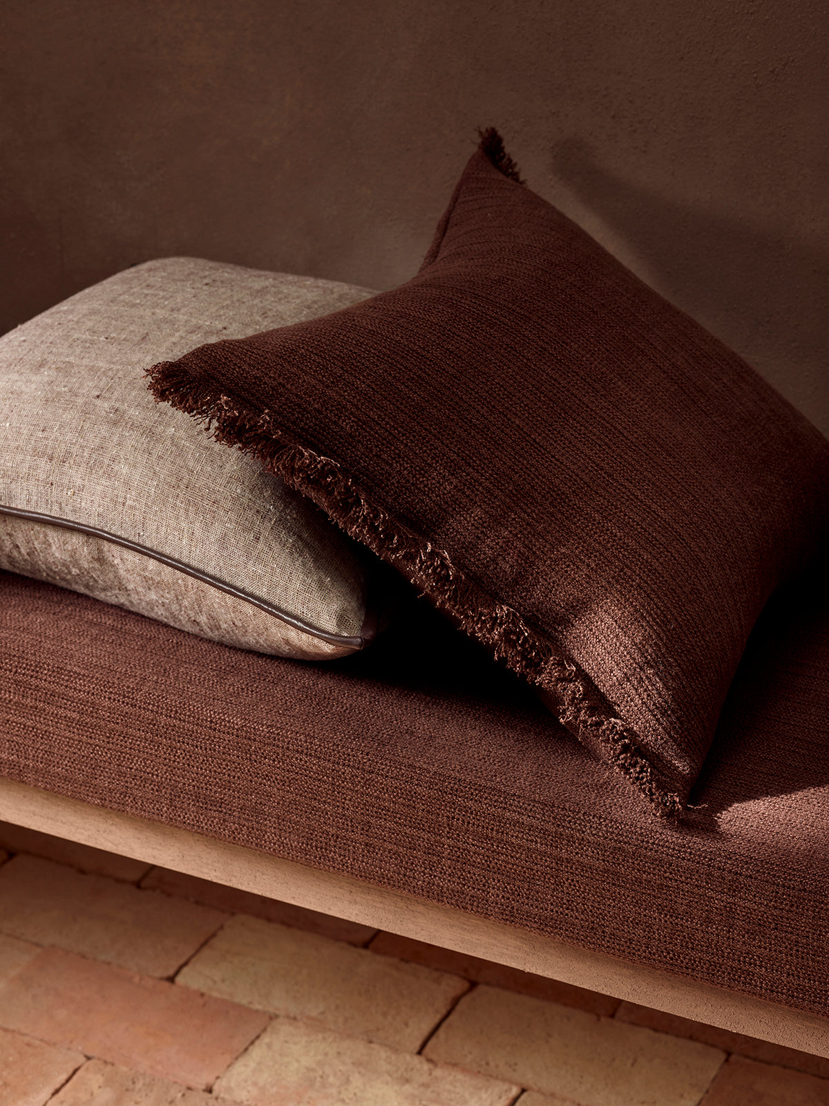 UPHOLSTERED BENCH AND CUSHION - BISON MADDER