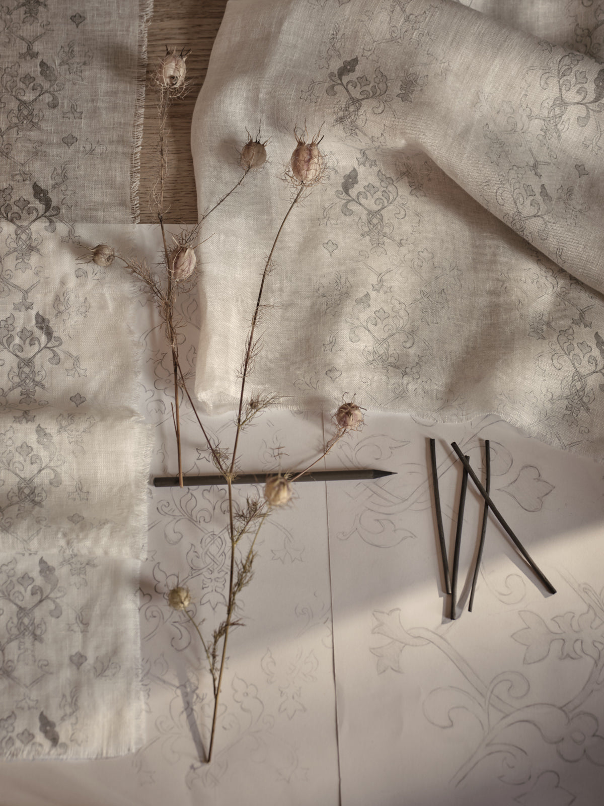 SHEER CURTAIN IN DESERT ETCHING WHITE CLAY