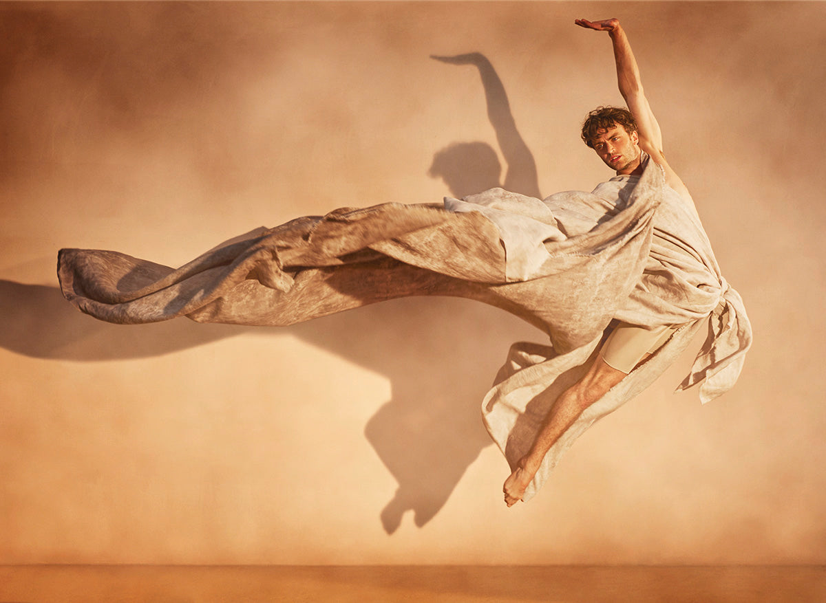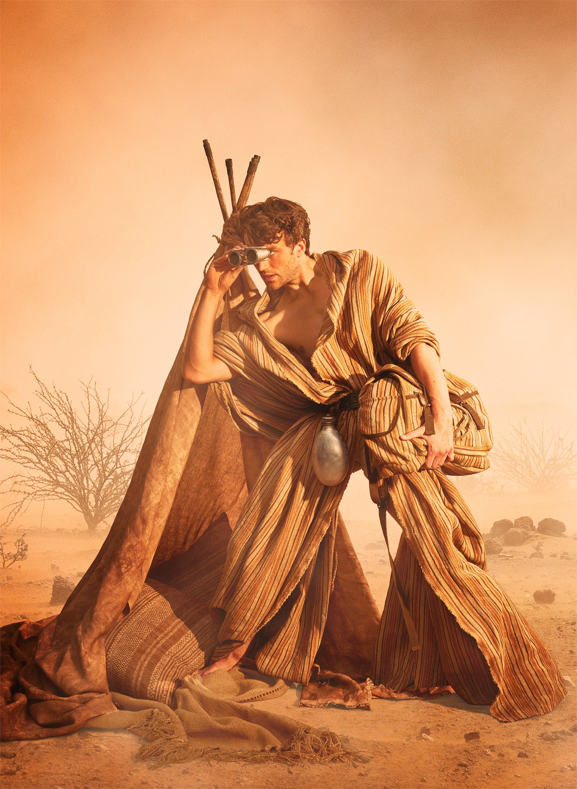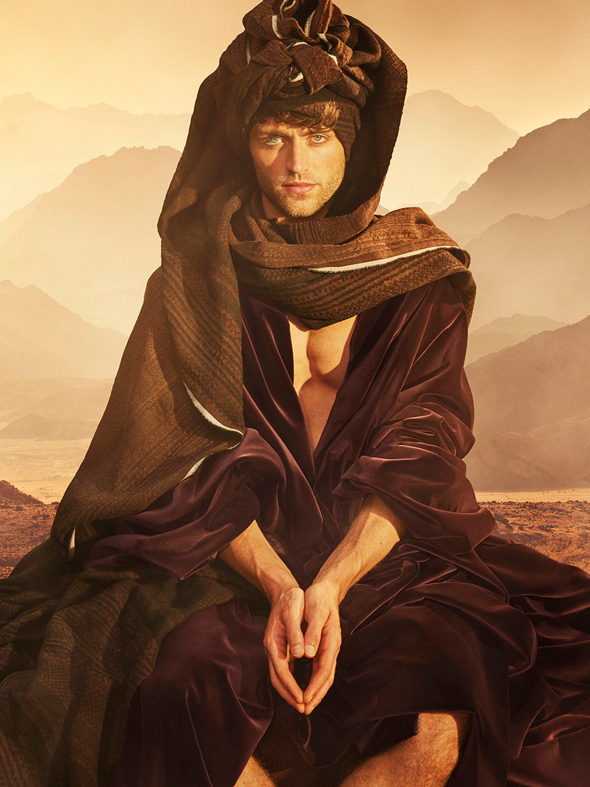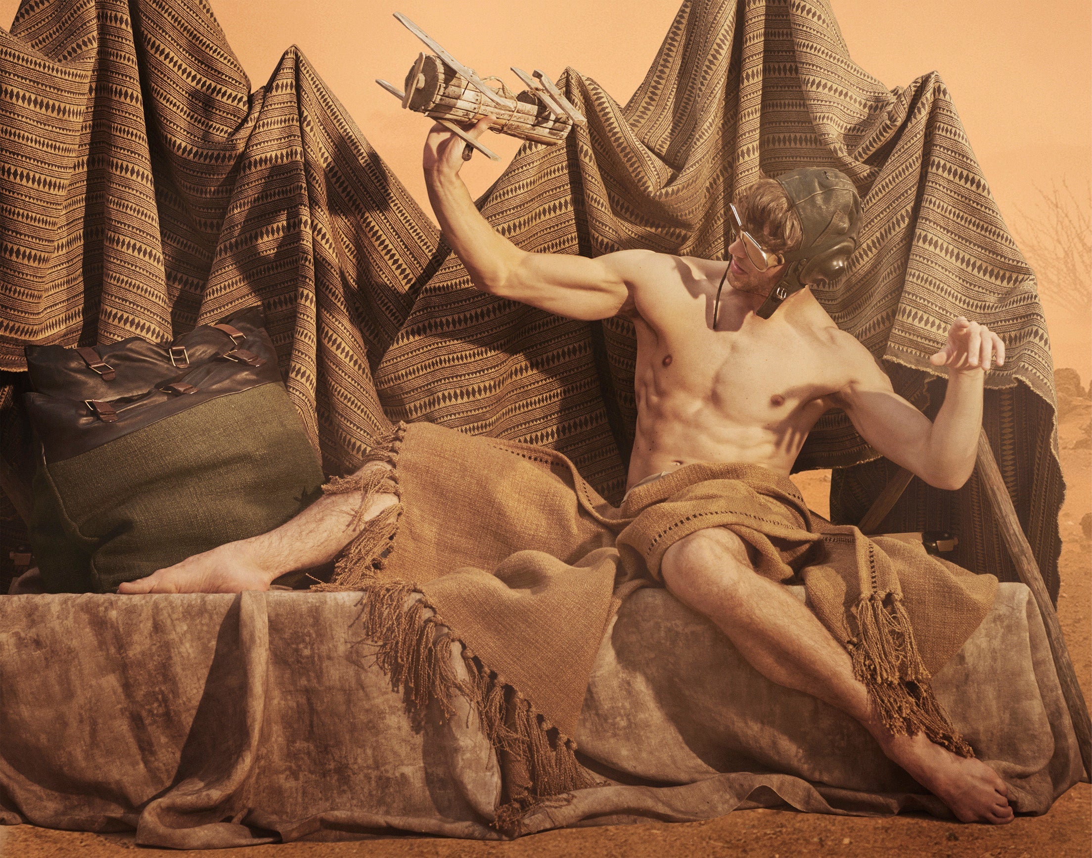 FABRIC DROP AROUND THE MODEL AND CUSHION IN STAMPEDE FOSSIL