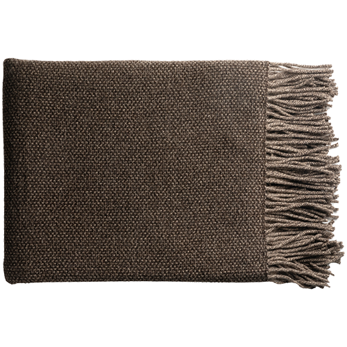 MOULINE CASHMERE BED THROW WITH FRIGE - CHOCOLATE