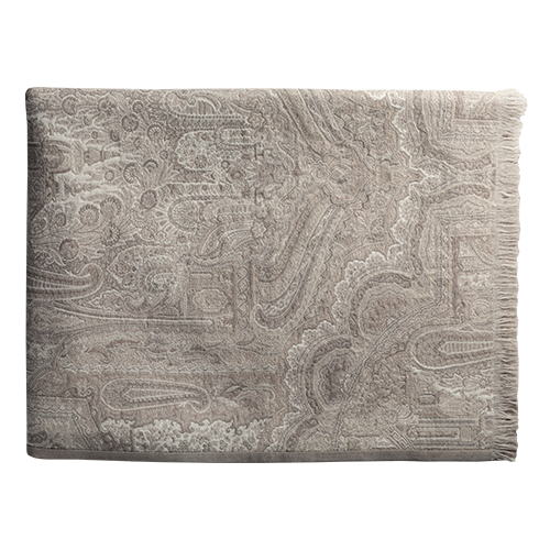MOULINE CASHMERE BED THROW WITH FRINGE - OAT