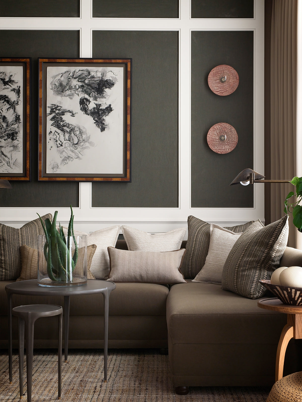 UPHOLSTERED SOFA, MERINO VELVET - OLIVE