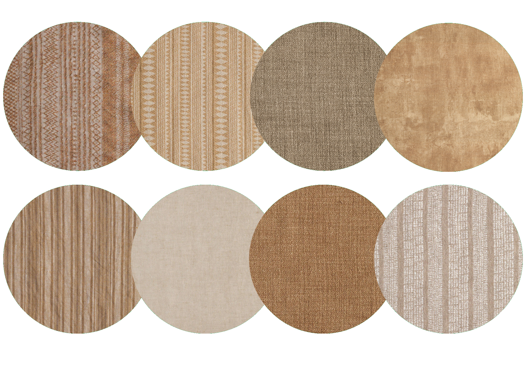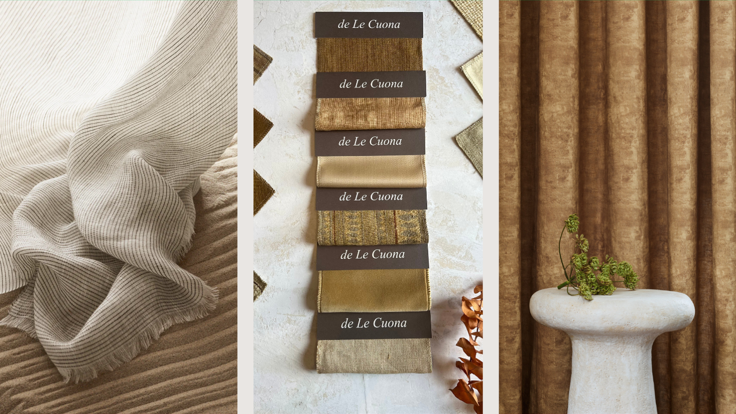 Combine textures of shimmering velvets with raw slubby linens and contrast translucent sheers with heavy weight upholsteries to create schemes with a welcoming effortless elegance. Luna Moth – Ivory, made of 100% linen, diffuses light and adds ethereal beauty to blinds and curtains, while Pure 1 – Silk Moth showcases a subtle pattern of intertwining twigs and foliage in an organic linen curtain weight weave. Cavalier - Ale, a sumptuous velvet with sleek metallic radiance, adds opulence to any setting. In contrast, Boardwalk – Panama, a heavy yet tailored linen and wool upholstery cloth with a strié melange effect is robust yet sophisticated. Flint – Oat, is a soft tweedy cloth that blends wool and linen, and speaks of rugged mountain landscapes, while Dahna - Scorched Earth, is a tightly woven linen with an elegant drape, that is perfect for curtains, and captures the shifting shades of the desert.