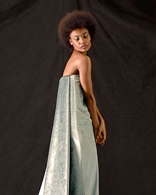 Liquid Teal Velvet Dress by Oscar de la Renta & de Le Cuona for ELLE DECOR "Not for Sale"