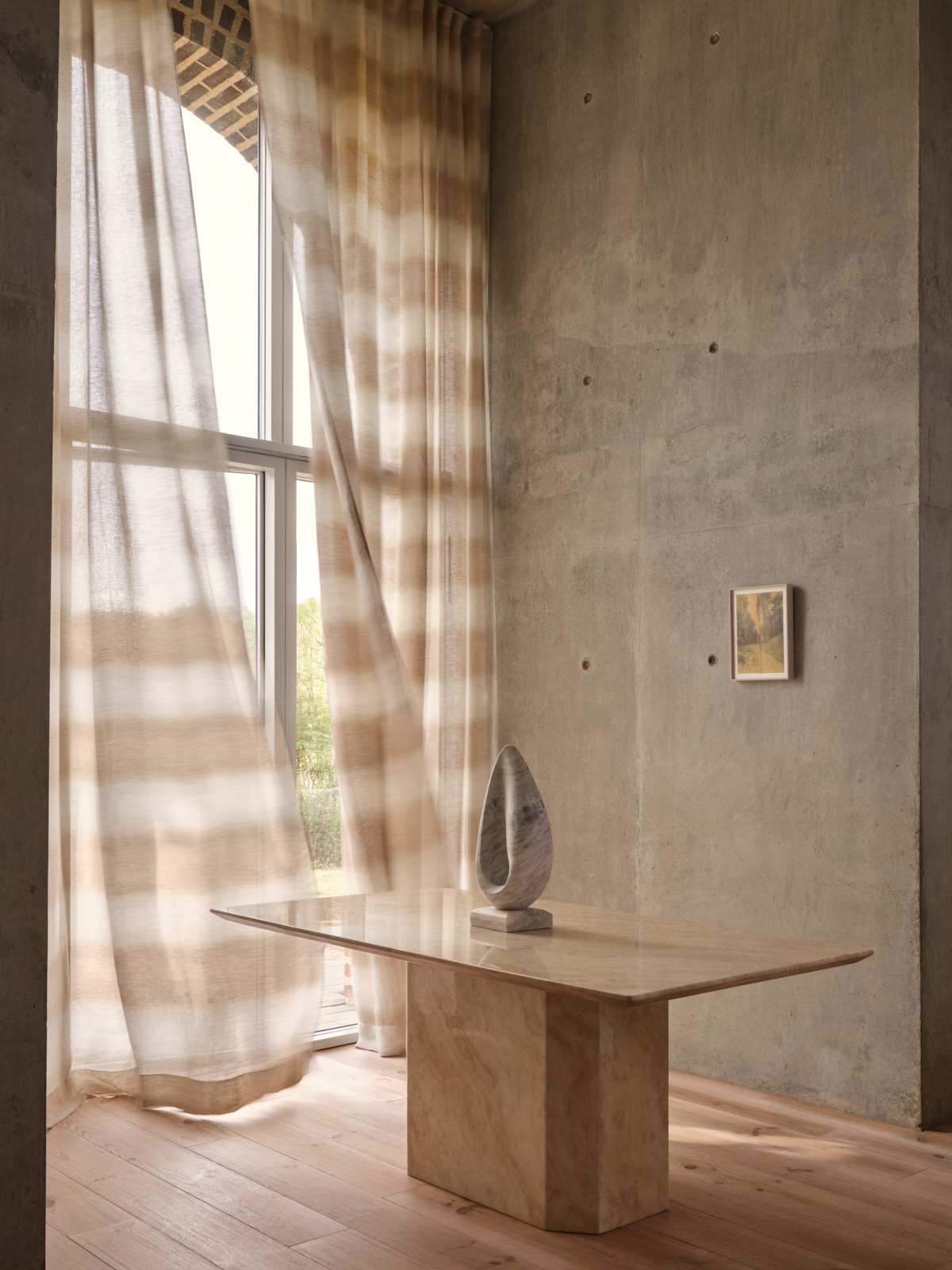 de Le Cuona’s Sheer Collection celebrates effortless elegance with double-width curtain fabrics woven from natural fibres. These airy blends of silk, wool, and linen filter light beautifully, softening spaces with a luminous, tranquil presence. Whether layered or standalone, each sheer adds refined texture and understated style—perfect for curating a home that feels both personal and timeless.