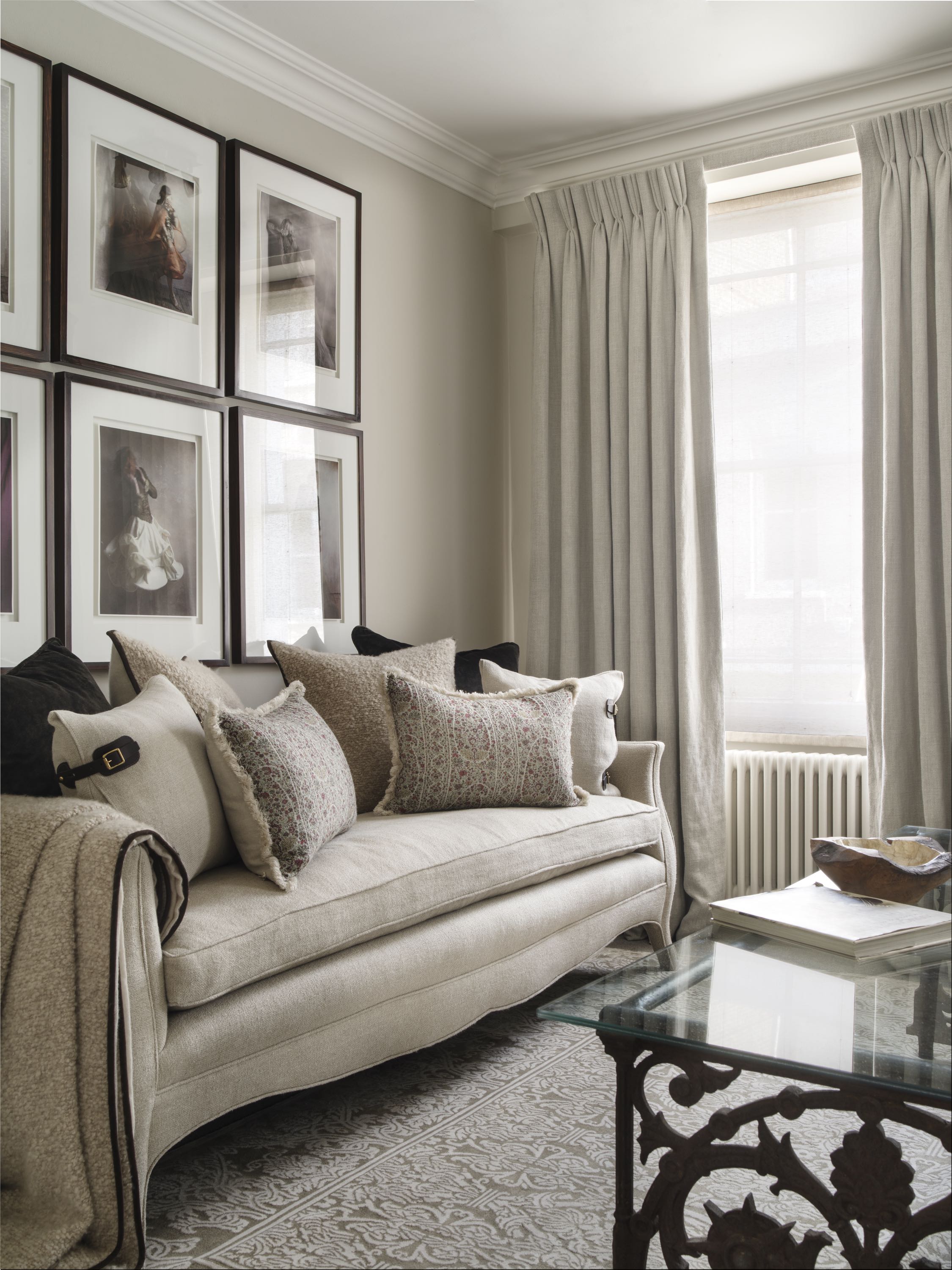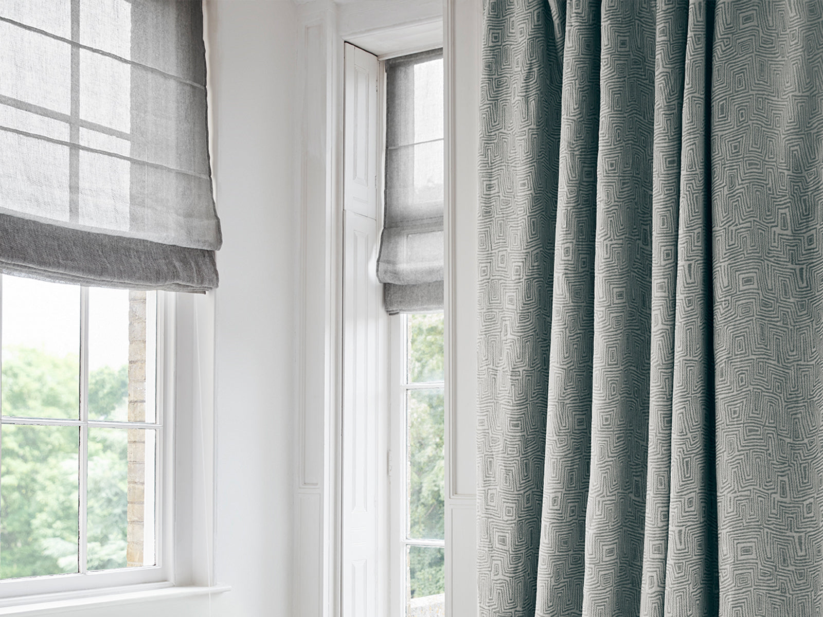 Blinds can be used for privacy whilst allowing light in, or to stop the light using a black-out lining. Different styles can suit different fabrics and window types. They can create a smart window treatment or an informal effect depending on which you choose. Some of the most popular are Roman blinds, roller blinds, London blinds, Cascade Roman blinds, and soft Roman blinds. Layer two blinds on the same window, one sheer, and one black-out, or combine a blind with a curtain treatment to soften the window. Whatever your window architecture or chosen aesthetic our bespoke team will help you create the best result for your project.