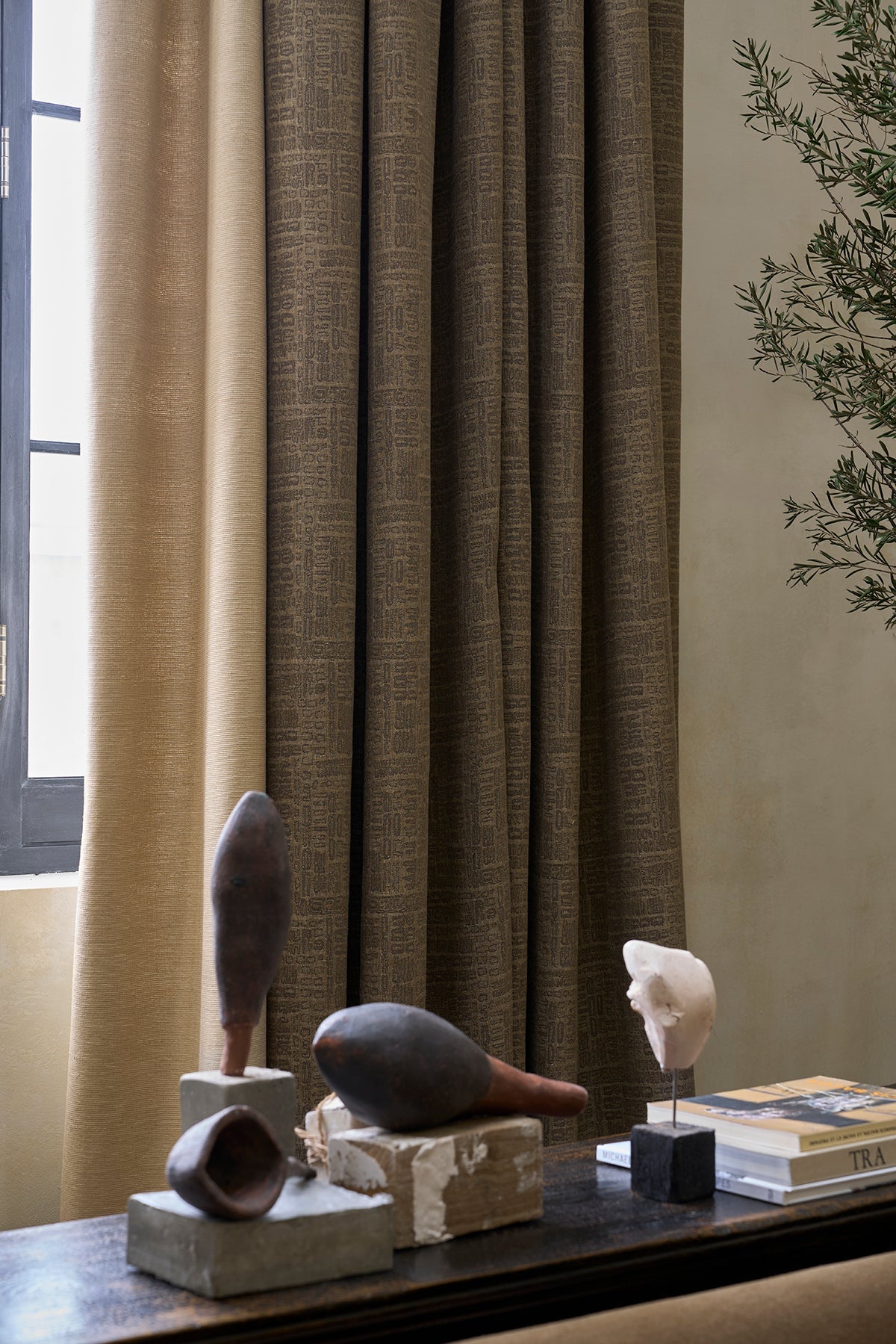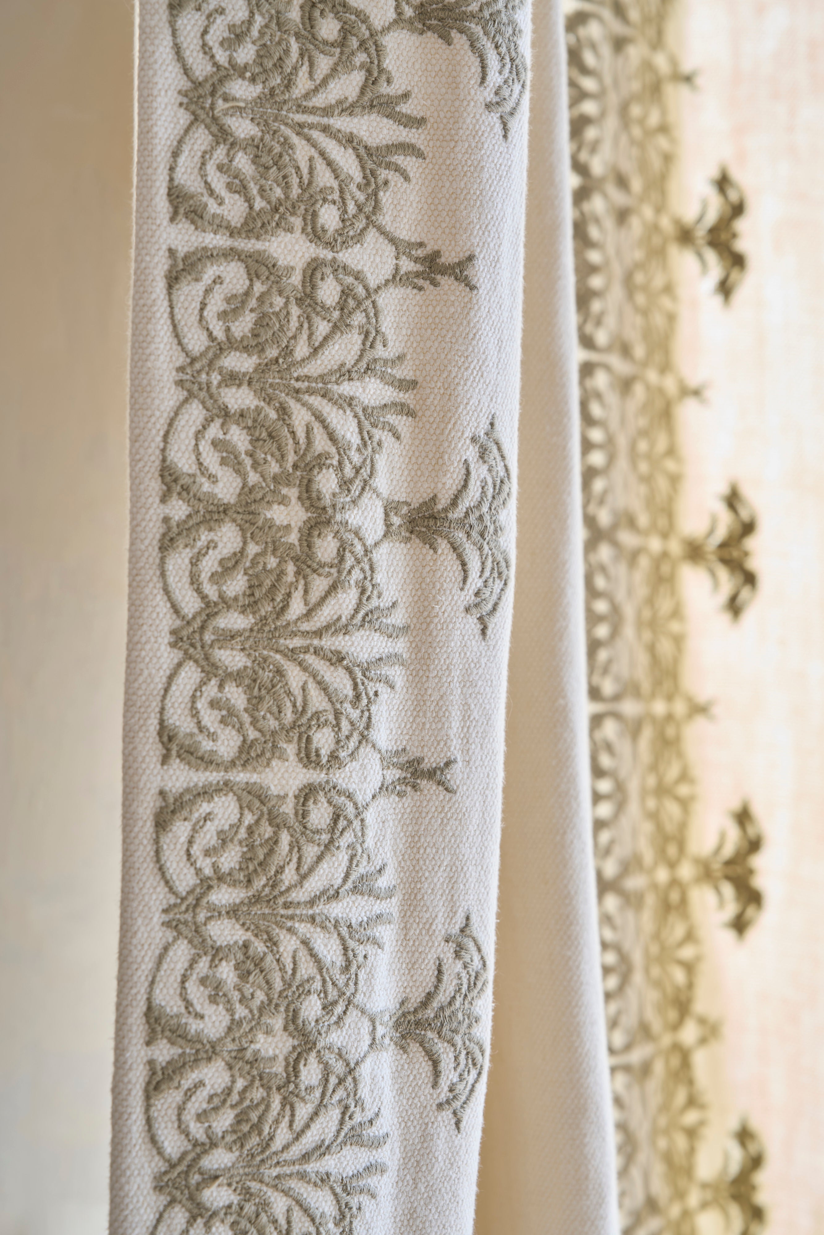 Different heading styles, suit different fabrics and will create a different feel in a room. All styles can be achieved. Some of our more popular choices are French, pinch, inverted, or double pleats, wave, or hand-gathered headings. Different lengths can also create a change in atmosphere and aesthetic. Curtains can just touch the floor, or drape and pool on the floor. Curtains can have no lining for a soft relaxed look, or a lining and interlining to add a structure to the drape. Sheer fabrics can be used to let light in yet provide privacy and can be layered with lined curtains at the same window.