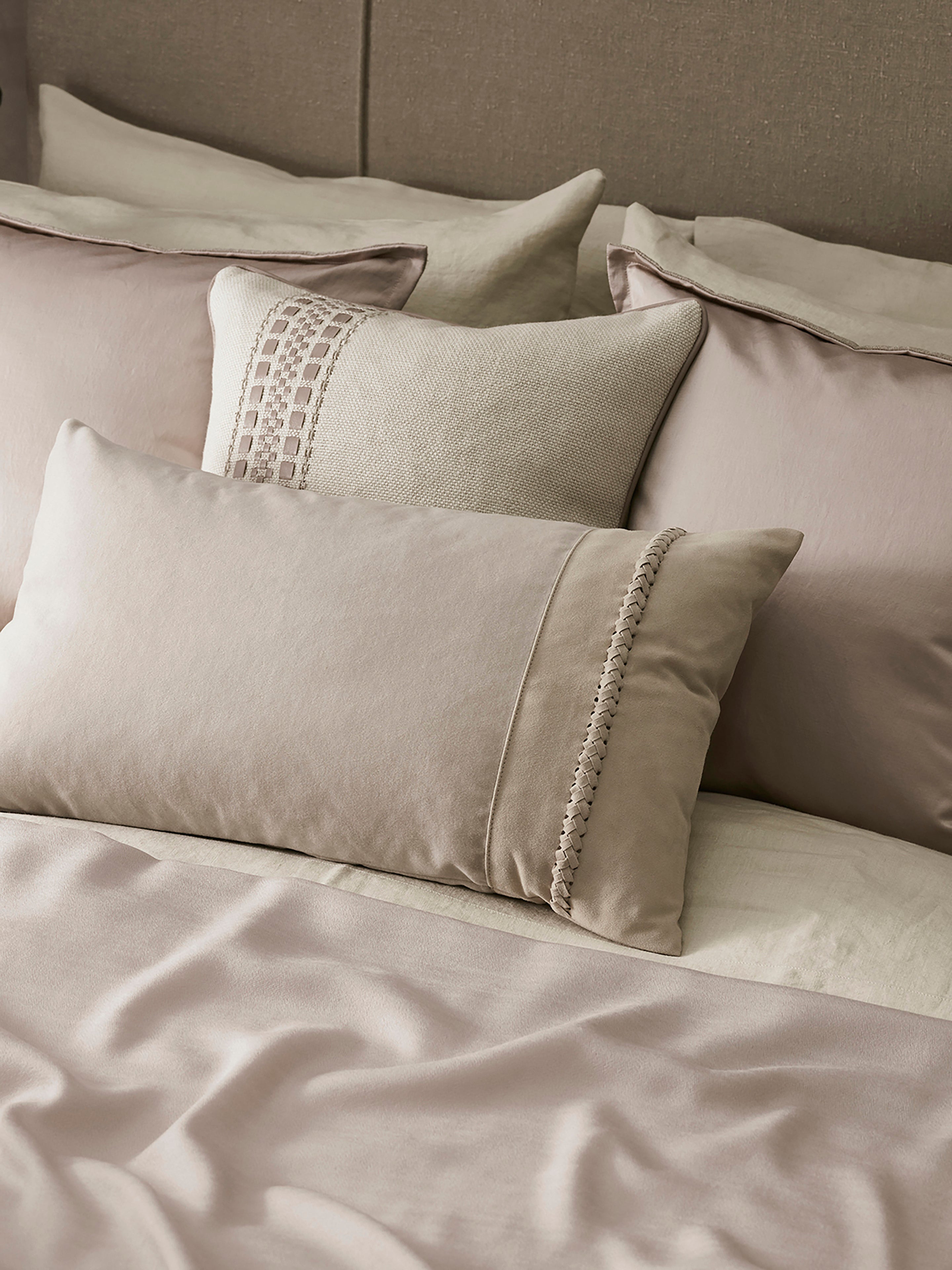 BED UPHOLSTERED IN PRIMITIVE LINEN - CUMIN