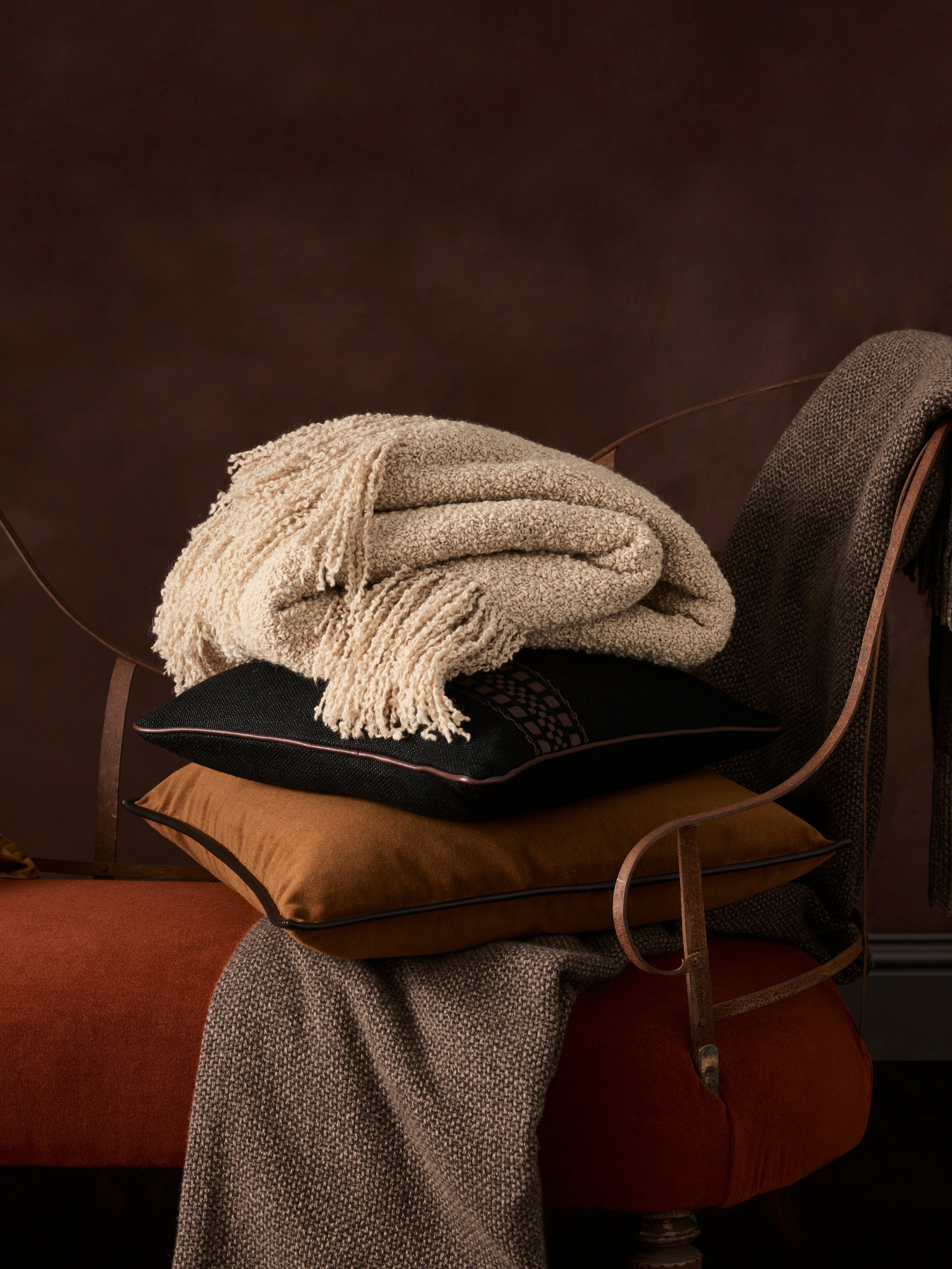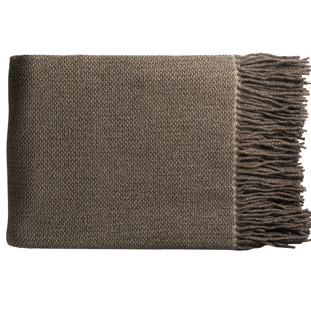 MOULINÉ CASHMERE THROW WITH FRINGE - CHOCOLATE