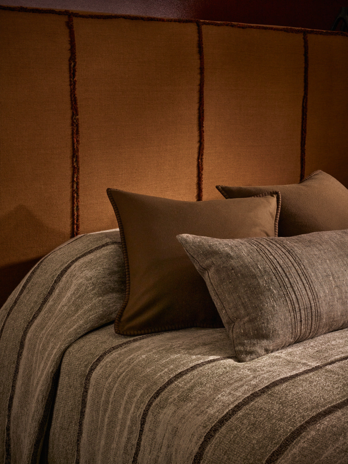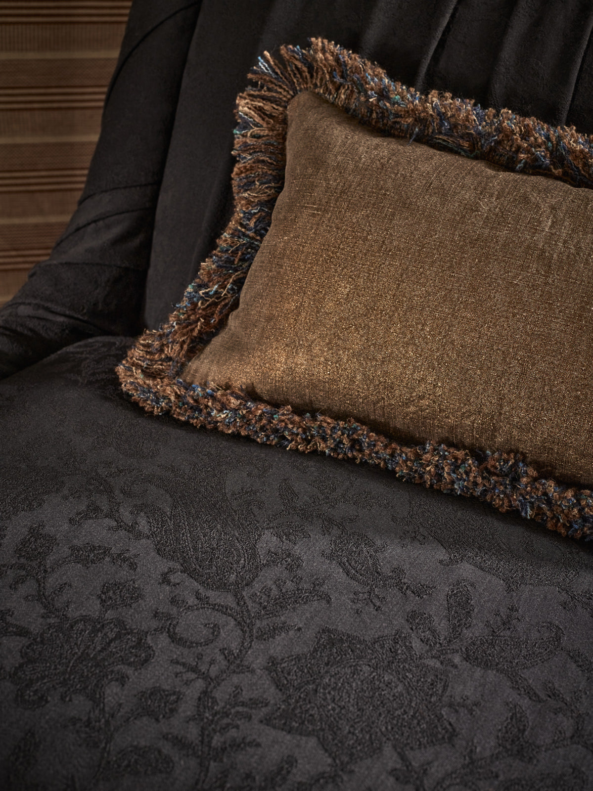 Hand crafted accessories explore the world of the senses. Textures are layered, colours combined, and intricate detailing applied to create unique cushions and throws. Each piece is made in Britain from de Le Cuona’s exquisite natural fabrics.